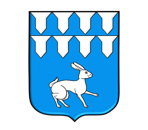 Blazon: Shield: Azure a rabbit passant sinister Argent under a chief vair in pale.