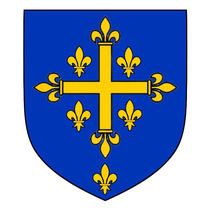 Blazon: Shield: Azure a cross fleury between five fleurs de lis Or.