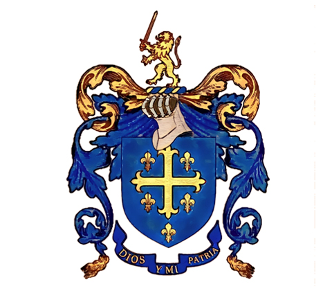 The fleur de lis represents virtue, purity, nobility, kindness, and life, and the fleury cross wisdom, faith, and chivalry. The blue alludes to peace, and the gold to hope. The lion and sword symbolize courage and valor.