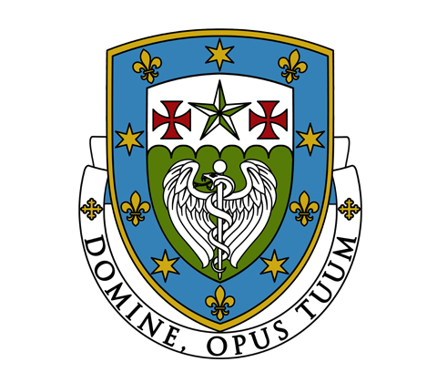 The red crosses of St. Camillus are a reference to this patron saint of nurses and healthcare. The star of La Salle allude to the Armiger’s alma mater.